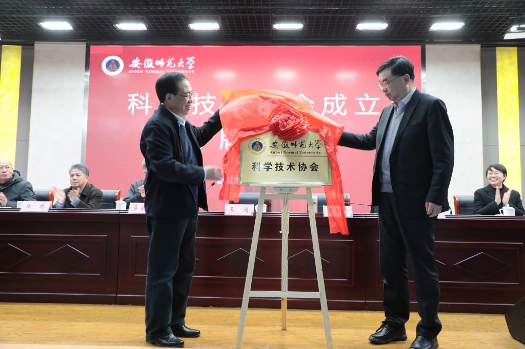 耿保友代表校科学技术协会筹备工作组做了校科协筹备工作报告。陈佩环宣读了《安徽省科协关于同意成立安徽师范大学科学技术协会的批复》。随后,胡朝荣和王洵共同为“安徽师范大学科学技术协会”揭牌。
