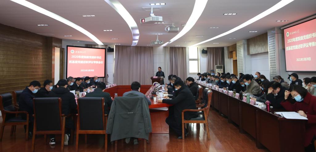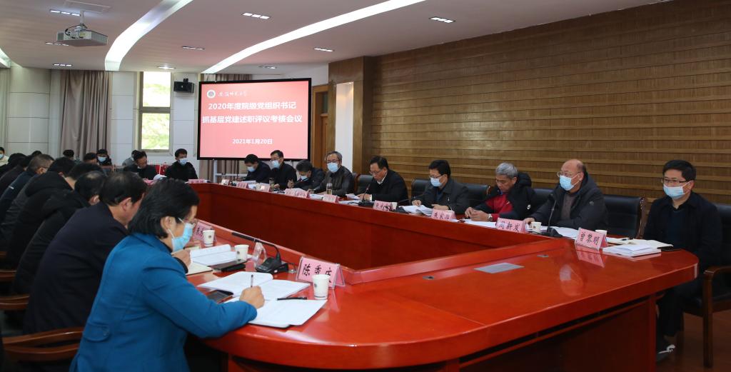 本网讯(组织部 李高举)为深入学习贯彻习近平新时代中国特色社会主义思想,全面落实新时代党的建设总要求,推动全面从严治党向基层延伸,1月20日下午,学校召开专题会议,全面开展2020年度院级党组织书记抓基层党建述职评议考核。校领导胡朝荣、张庆亮、蒋家平、朱家存、陆林、周新发,其他校党委常委,党委部门负责人,各院级党组织书记,以及学校部分党代会代表、教代会代表和党员教师代表参加会议。会议由校党委副书记蒋家平主持。