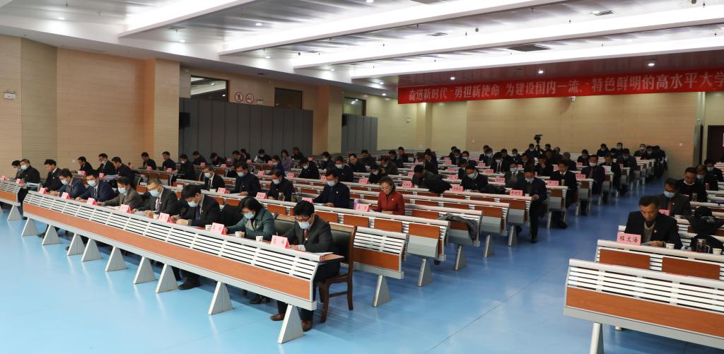 张庆亮在主持会议时要求,全校上下要认真贯彻落实会议精神,进一步推进学校“十四五”事业发展。要在更高水平上解放思想,坚决摒弃传统观念、惯性思维、习惯做法,在变中求新、变中求进、变中突破;要在更高水平上凝心聚力,发扬优良传统,紧紧围绕高水平大学建设目标,全校上下拧成一股绳、心往一处想、劲往一处使,汇聚起推进学校事业发展的强大合力,创造无愧于历史、无愧于师生的业绩,以更加豪迈的姿态走向建校100周年;要在更高水平上狠抓落实,加强工作谋划,强化顶层设计,把学校“十四五”规划制定得实而又实,把各专项规划制定得实而又实,把各部门各单位2021年工作计划制定得实而又实,让脚踏实地、埋头苦干在校园内蔚然成风,确保学校的每项决策部署落实落地、抓出成效。