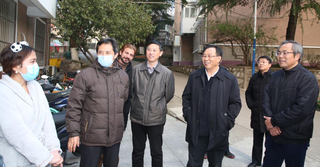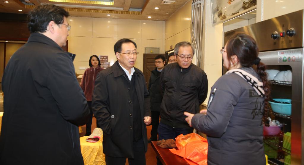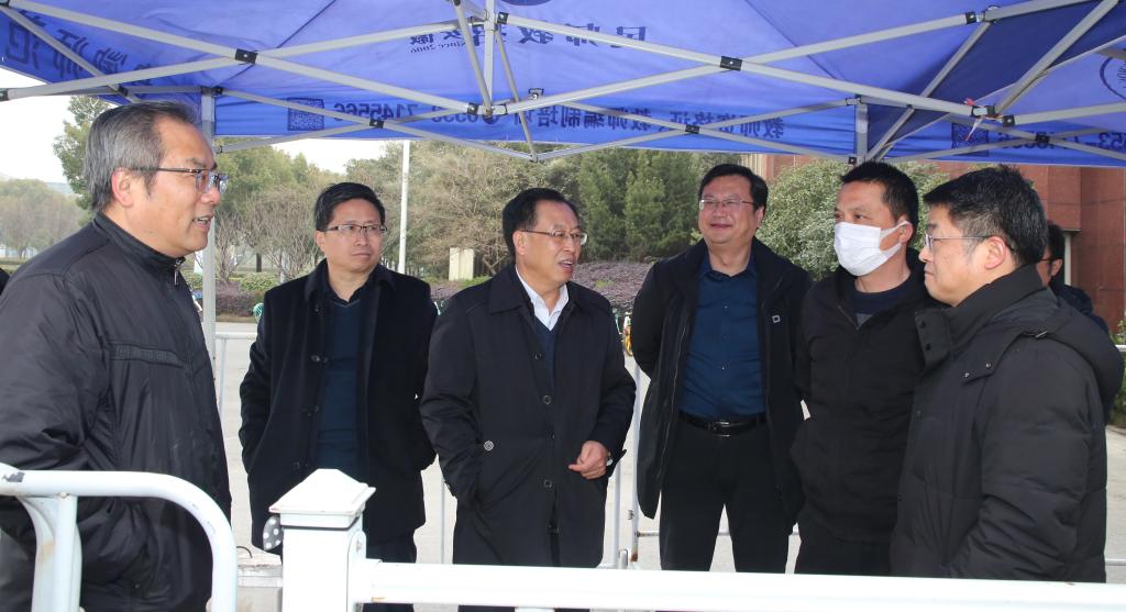 本网讯(党委宣传部 王哲谦)1月24日,校党委书记胡朝荣、副书记蒋家平带领办公室、保卫处、总务处相关负责同志,深入两校区一线检查指导寒假期间疫情防控工作,看望慰问假期坚守在岗的教职员工。