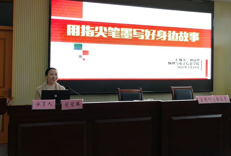 动容的读书写作分享。第八届全国书香三八活动的征文优秀奖获得者、文院的汪亚君和家书优秀奖获得者、物电学院的刘冠琪,分别为大家分享了自己获奖作品的创作体会。汪亚君在《奶奶的的养生之道》作品分享中提到了知识与素质的非正比关系,目不识丁的奶奶身上体现出了中国妇女的传统美德——勤劳善良与乐观坚强;家庭是一所学校,父母是永远的老师。刘冠琪在《在小家,聊聊有大国情怀的你》作品分享中叙述了作品创作前的创作背景和自己的所思所想,新冠疫情因素导致新婚夫妻异地,从知晓怀孕到近五个月的暂时分离,用最真的感受促成一封家书作品的诞生,所有真情实感的凝聚离不开多读书、多积累、多写作。