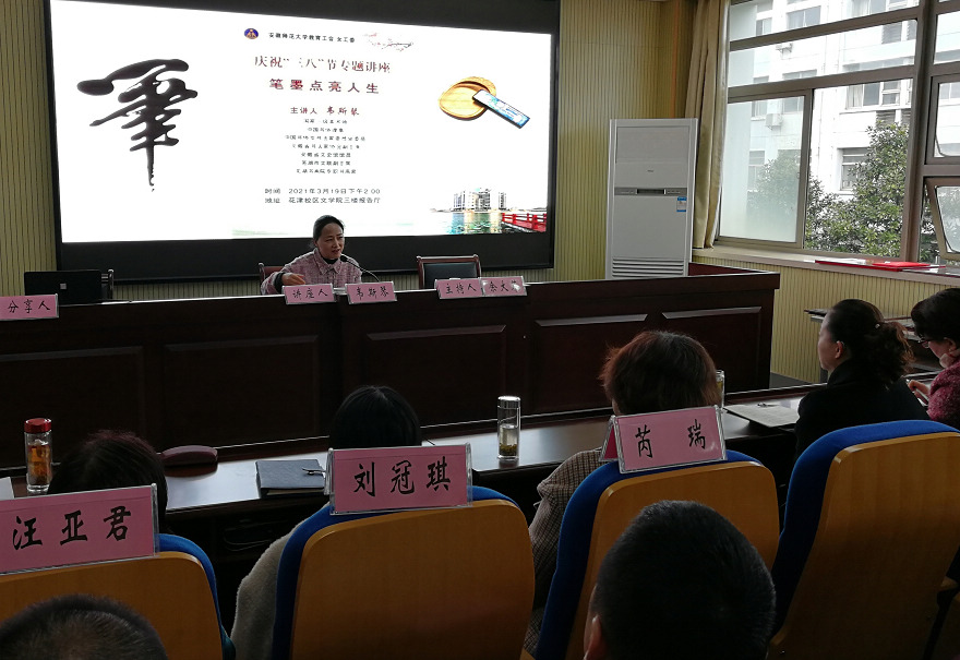 本网讯(校工会 李平)3月19日下午,文学院三楼报告厅内洋溢着浓浓笔墨书香, 校工会女工委在这里举行庆祝“三八”妇女节专题讲座和读书分享会,会议由校工会主席、女工委主任余大芹主持,校女工委、分工会主席、分工会女工委参加了会议。