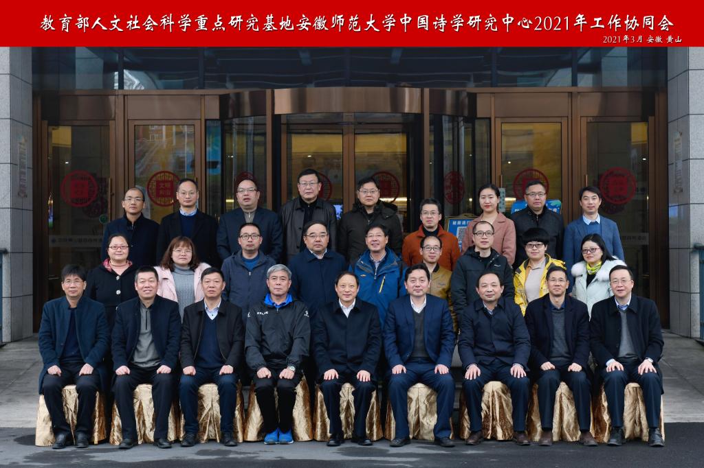 本网讯(中国诗学研究中心)3月21日上午,教育部人文社会科学重点研究基地安徽师范大学中国诗学研究中心2021年度工作协同会在黄山学院举行。安徽省教育厅科学研究与研究生教育处处长刘业勋,黄山学院党委副书记、校长李铁范,安徽师范大学党委常委、副校长朱家存,黄山学院党委委员、副校长张德学,安徽师范大学科研处处长徐彬和黄山学院科研处处长汪洪峰等出席会议。安徽师范大学中国诗学研究中心和安徽大学、淮北师范大学、安庆师范大学、阜阳师范大学、池州学院、黄山学院6个分中心负责人及相关工作人员参加会议。会议开幕式由张德学主持,大会交流由中国诗学研究中心主任胡传志主持。