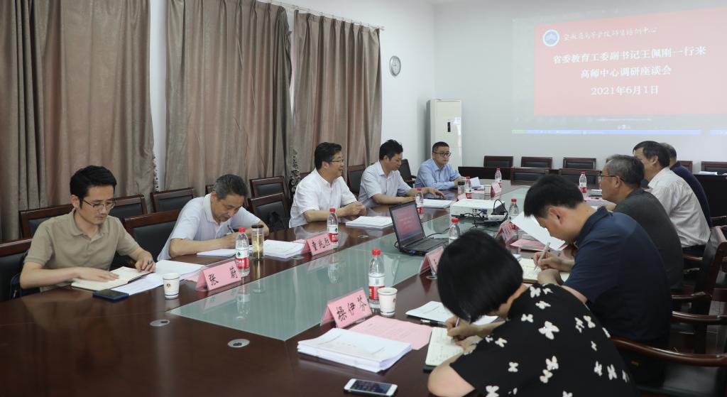 下午,王佩刚一行在蒋家平、学校办公室、宣传部有关负责同志陪同下来到安徽省高等学校师资培训中心,实地调研指导高师中心工作。省教育厅人事处二级调研员童兆胜,高师中心负责同志及工作人员参加会议。