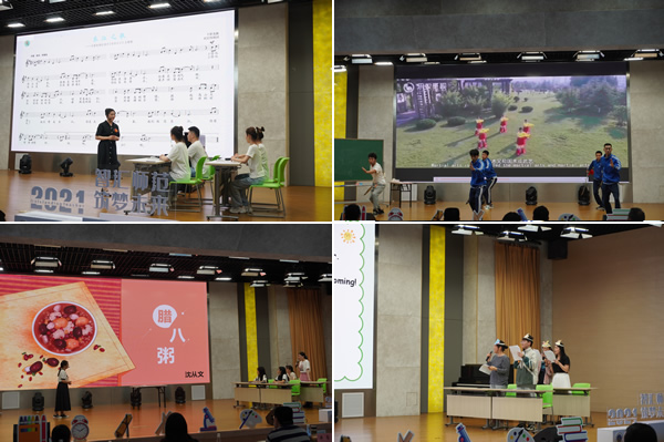 竞赛分即席讲演题目和模拟上课两个环节进行,参赛同学通过抽题和备考完成3分钟即席讲演和15分钟的模拟授课。比赛过程中选手需完成板书设计、课件展示、师生互动等多方面内容,评审专家对每位选手的表现逐一打分,综合计算得出最终成绩。比赛时间紧、要求高,但参赛选手们个个镇定从容、思路清晰,展示出自己最好状态,使本次优秀作品展演真正成为校园最亮丽的风景线。