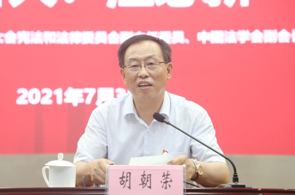 胡朝荣在总结讲话中指出,江必新主任的报告视野开阔、内涵丰富、立意深远,为我们深入开展党史学习教育,学习贯彻习近平法治思想和加快推进学校依法治校、改革发展提供了有力指导。全校上下要把学习贯彻习近平法治思想,与深入学习习近平总书记在庆祝中国共产党成立100周年大会上的重要讲话精神、与党史学习教育紧密结合起来,全面系统学、深入思考学、联系实际学,坚持读原著、学原文、悟原理,强化自主自觉学习,充分发挥学科专业和智库平台优势,深化对习近平法治思想的理论宣讲和研究阐释,努力推出一批高质量、有深度、有分量的理论研究成果。要把学习成果转化为推动学校特色高水平大学建设的动力,聚焦涉及师生“急难愁盼”的问题,聚焦以人民为中心的发展理念,扎实开展“我为师生办实事”实践活动,切实把实事办好、好事办实,不断提升全校师生员工的获得感、幸福感和安全感,以昂扬的姿态奋力开启全面建设社会主义现代化国家新征程,以优异的成绩庆祝中国共产党成立100周年!