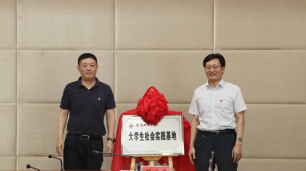 本网讯(法学院 蔡志鹏)7月19日,安徽师范大学与广德市共建社会实践基地揭牌仪式,在广德市会议中心政府会议室举行。校党委副书记、校长张庆亮和广德市委副书记、市长周其红为实践基地揭牌。校团委书记汪凯,法学院党委书记赵红,副书记张玉新,广德市委常委、组织部长储德清,市委常委、副市长马亮,市委组织部常务副部长朱寄生,团市委书记佘婧等参加。揭牌仪式由马亮主持。会上,安徽师范大学法学院同广德市签订人才培养与就业工作合作协议。