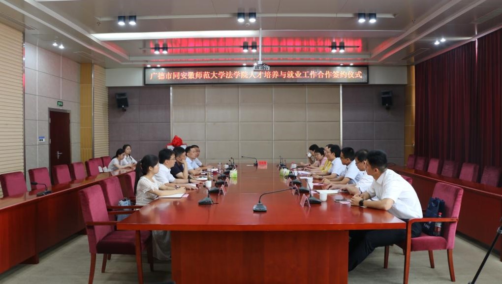 储德清和赵红分别代表广德市政府和安徽师范大学法学院共同签订了人才培养与就业工作合作协议。根据协议,双方将建立人才供需基地,在人才培养、人才输送、就业工作、校企合作等方面进行深入合作,努力形成优势互补、资源共享、相互协作、共促发展的人才培养工作新格局。