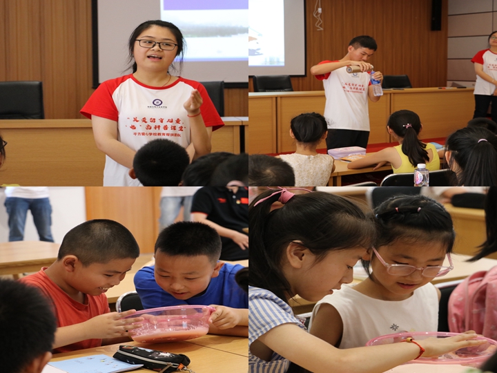 “金苹果”科普翻转课堂,让科学走近你。宣讲结束后,调研组组一行前往支教点看望千方爱心支教团队全体队员,并观摩千方爱心团队成员现场授课。来自2020级物理学(师范)专业的鲍安琪以《“金苹果”科普之趣游物理小实验》为题,通过几组物理实验,将物理原理与生活常识相结合,通过向当地青少年展示一些有趣的物理现象,激发学子在日常生活中发现物理现象,对科学物理实验的产生兴趣。
