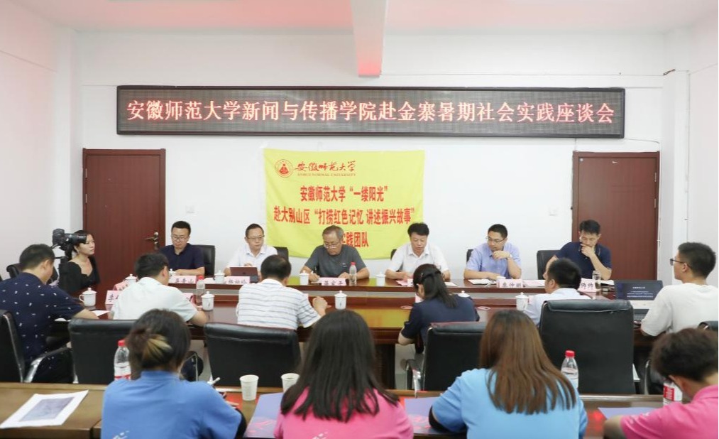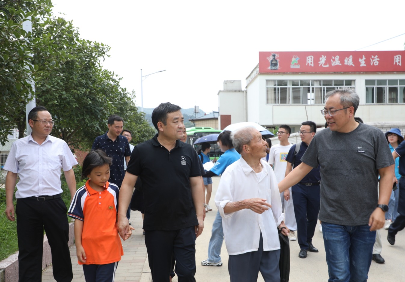 本网讯(新闻与传播学院 文/杨韵箫 徐思凡 摄/宋婷婷 徐小雪 申澳)7月23日,校党委副书记蒋家平,校团委副书记廖仲明,新闻与传播学院党委书记张师帅、执行院长杨柏岭、党委副书记吴青山、新闻学专业主任肖叶飞、摄影学专业主任李化来一行来到金寨县古碑镇慰问新闻与传播学院赴金寨“打捞红色记忆,讲好振兴故事”暑期社会实践团队师生。金寨县政协副主席、古碑镇党委书记吴旭,金寨县发改委党组成员、粮食物资储备中心主任贾元杰,古碑镇党委副书记彭显达陪同慰问。