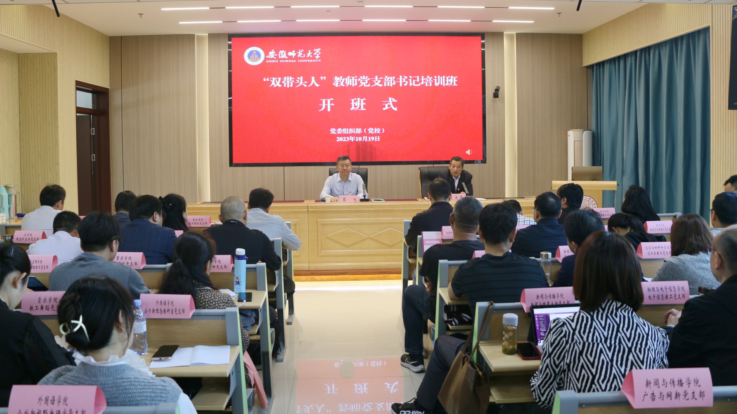 10月19日上午,学校“双带头人”教师党支部书记培训班在花津校区文典楼B108报告厅正式开班,校党委副书记周旭出席开班式并作动员讲话。开班式由校党委常委、组织部部长朱为民主持,学校“双带头人”教师党支部书记培训班全体学员参加学习。