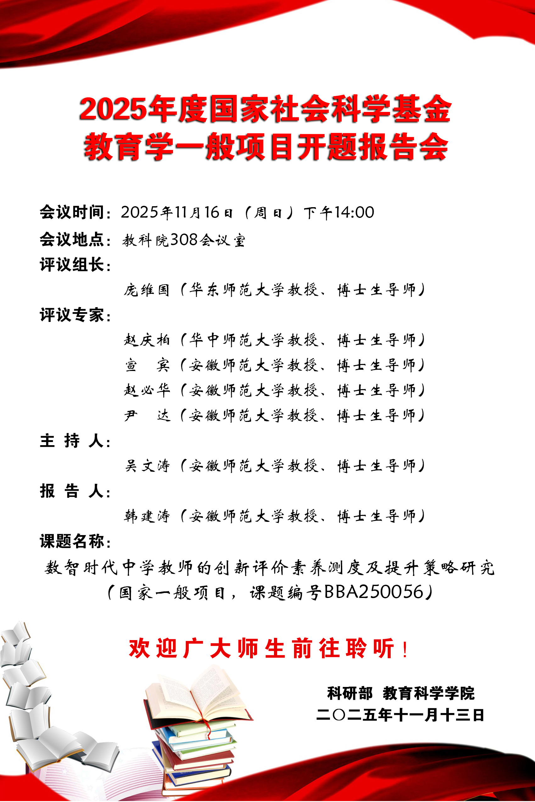 【学术预告】2025年度国家社科基金教育学一般项目开题报告会