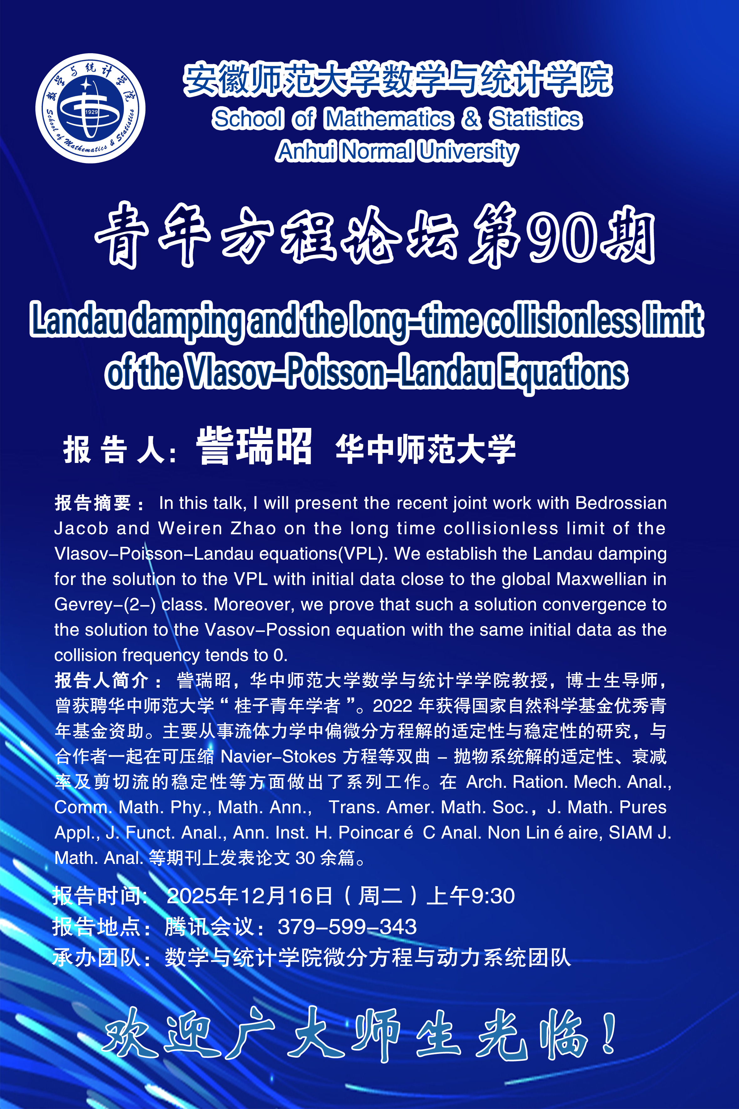 上一篇:【学术预告】数统学院青年方程论坛第91期:Exponential decay of linear KdV-type equations with localized damping on measurable space-time sets