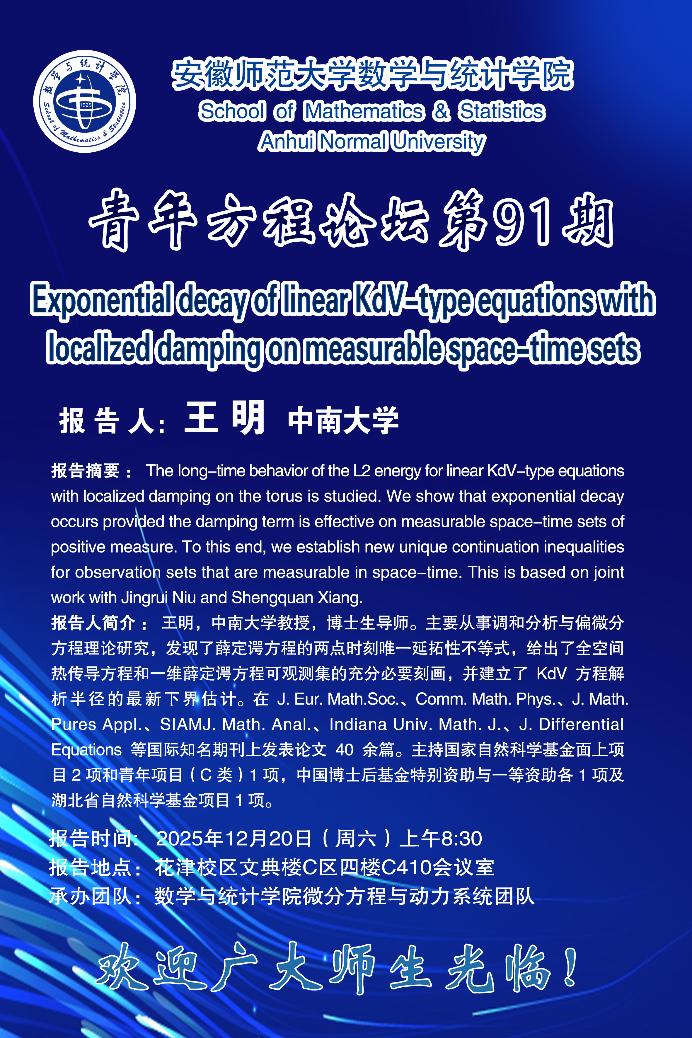 上一篇:【学术预告】数统学院青年方程论坛第92期:Decay estimates for anisotropic Navier-Stokes equations and Boussinesq equations