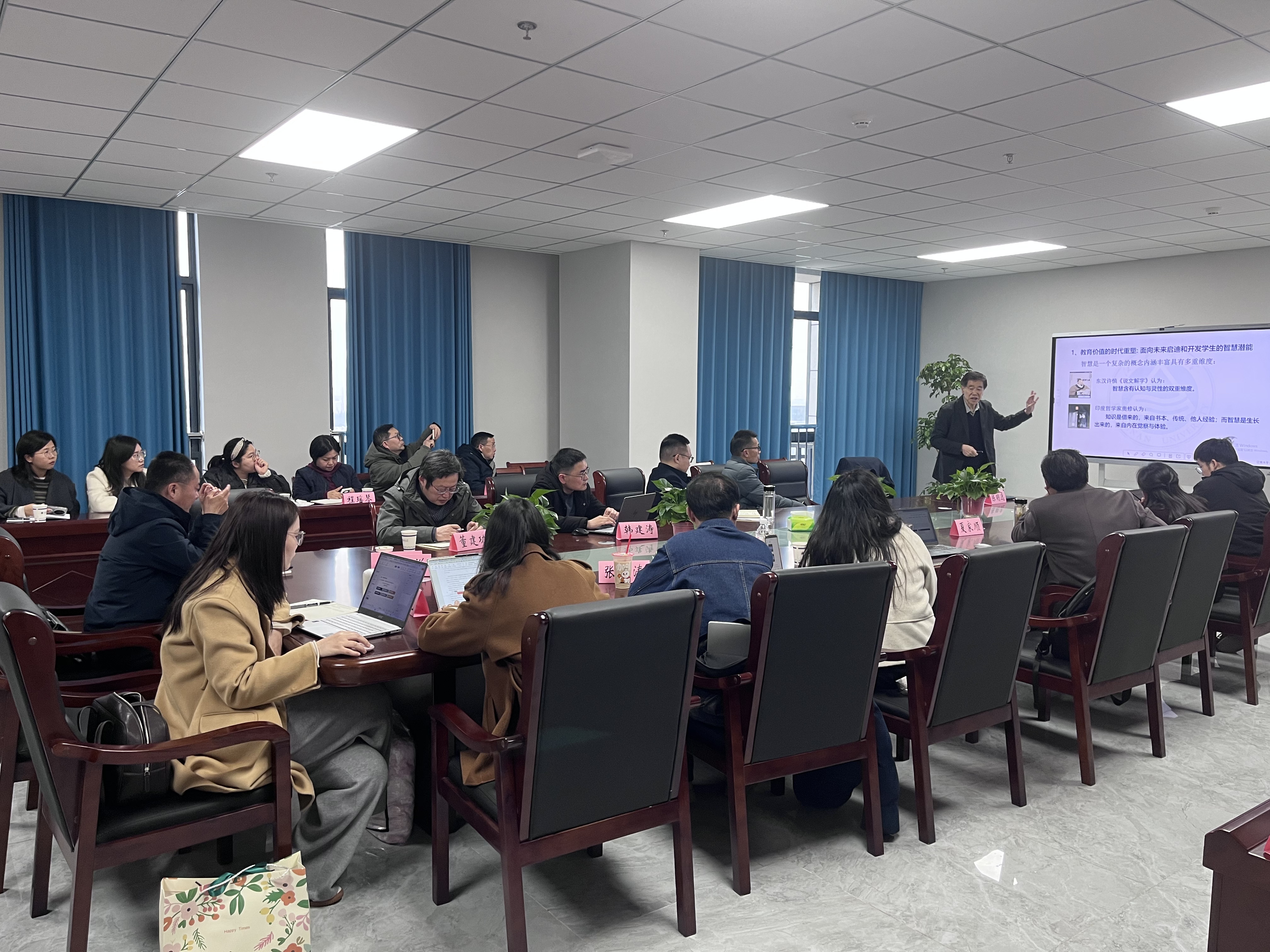 3月11日下午,教师教育学院在望道楼E栋1101会议室成功举办首期“智见・教师科研发展论坛”。本次论坛特邀江南大学陈明选教授,我校教育科学学院副院长韩建涛教授、科研部社会科学办公室主任戴忠朝作专题报告。学院全体专任教师及部分研究生参加本次论坛。
