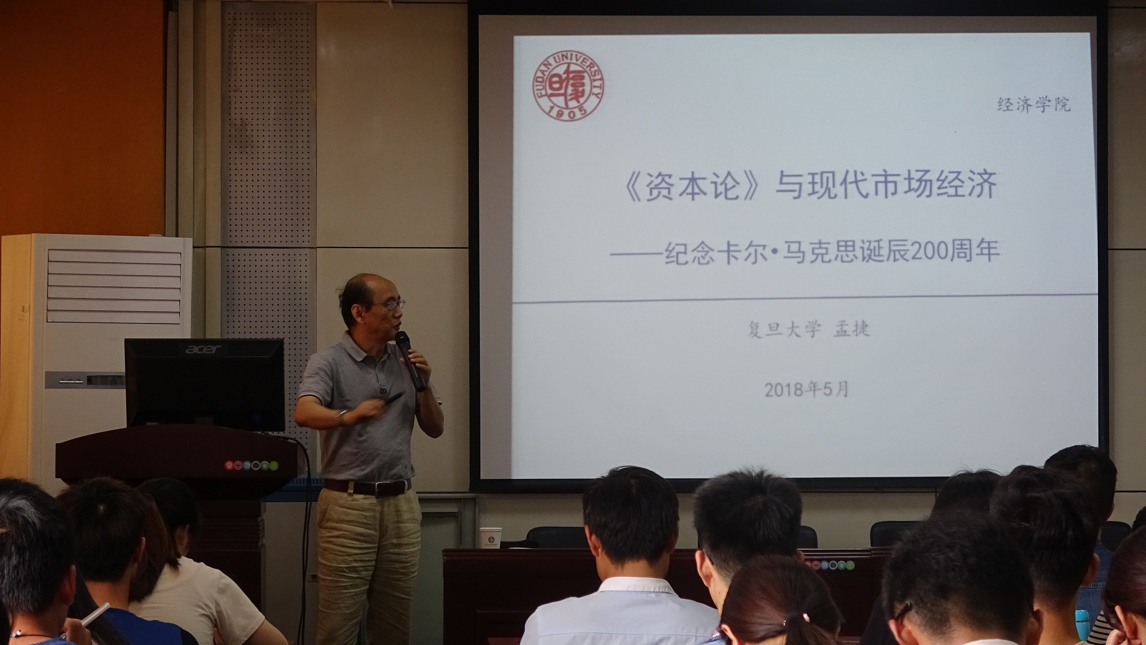 本网讯(经济管理学院 李长胜、但雅)5月31日下午,在花津校区经管学院二楼报告厅,复旦大学经济学院特聘教授、博士生导师,《政治经济学报》主编,中国政治经济学年会总干事,中国《资本论》研究会副秘书长、常务理事,全国马列主义经济学说史学会副会长孟捷教授应邀为经管学院师生做“《资本论》与现代市场经济”的学术报告,经管学院相关老师、研究生和本科生代表80余人参加了此次报告,此次报告由经管学院副院长马骥教授主持。