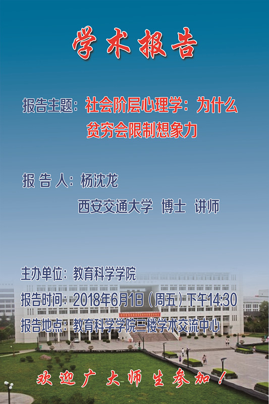 教科院学术报告:社会阶层心理学:为什么贫穷会限制想象力