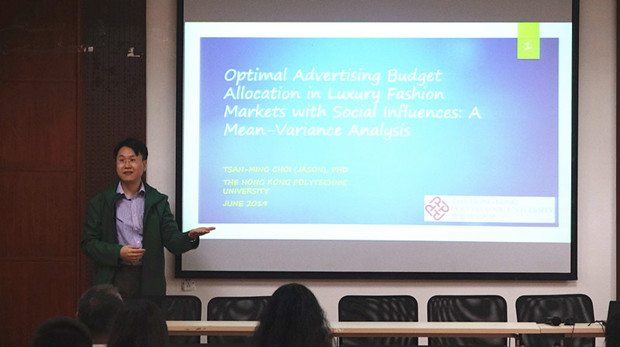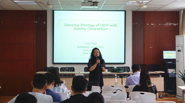 Jason教授在报告中以《Optimal Advertising Budget Allocation in Luxury Fashion Markets with Social Influences: A Mean-Variance Analysis》为主题,阐述了奢侈品的最优广告预算问题,从不同的视角给出了解题思路,即平均方差分析,阐述了研究的结论及原因。Jing Chen教授在报告中以《 Sourcing Strategy of Original Equipment Manufacturer with Quality Competition》为主题,考虑具有质量竞争的原设备制造商的采购策略问题,首先阐述了可能存在的几种采购方案,然后对各方案进行比较,得到了每种方案的适用情形。