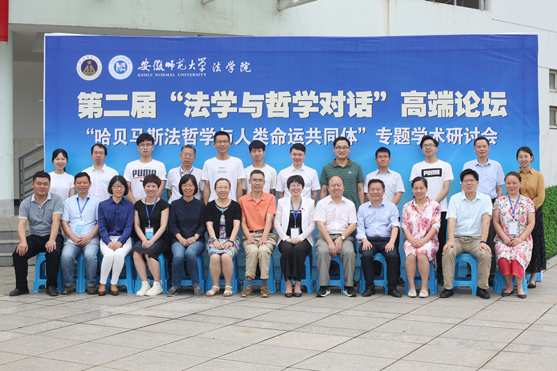 本网讯(法学院 储梦凡)6月22日,第二届“法学与哲学对话”高端论坛“哈贝马斯法哲学与人类命运共同体”研讨会在芜湖召开。本次会议由法学院与《马克思主义与现实》编辑部主办。来自中国社会科学院、华中科技大学、南开大学、武汉大学、同济大学、安徽大学等数所高校与科研机构,《马克思主义与现实》《世界哲学》《华中科技大学学报(社会科学版)》《安徽师范大学学报(人文社会科学版)》等学术期刊编辑部,以及我校法学院、马克思主义学院等近30名代表参加会议。