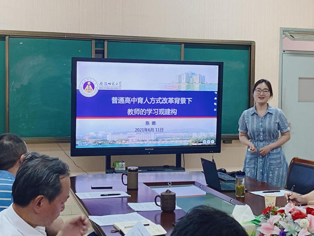 陈娜做了题为“普通高中育人方式改革背景下教师的学习观建构”的汇报。她从选题背景、教师学习观建构的历史变迁、普通高中育人方式改革背景下教师学习观建构的基本要求和可能方向等方面进行了阐述。艾瑞雪、阮成武、周兴国、徐赟就普通高中育人方式改革和教师学习观进行了讨论,陈娜老师感谢和回应了大家的意见建议。