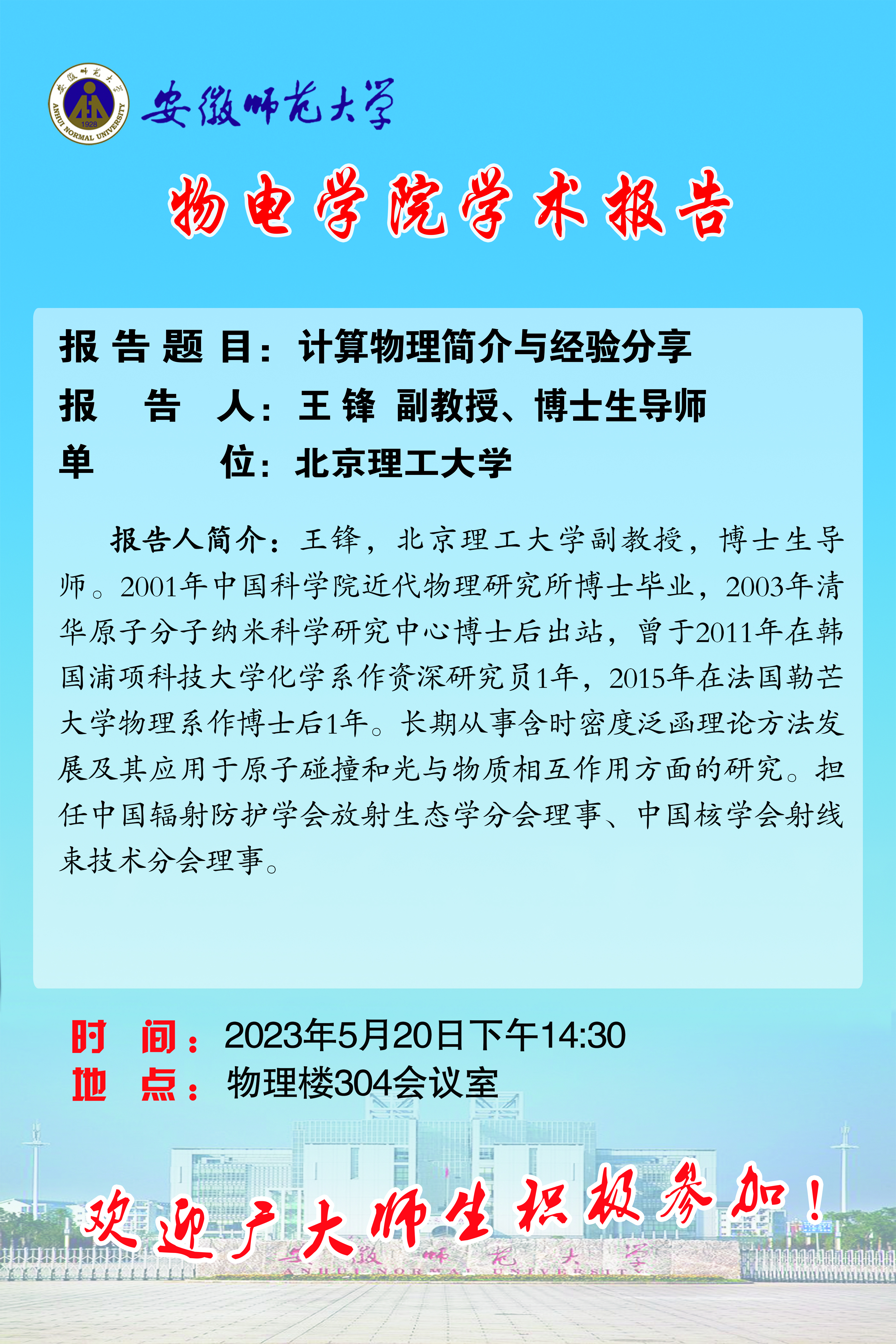 【学术预告·物电讲坛】王锋:计算物理简介与经验分享