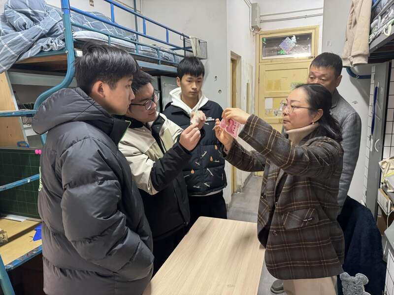 近日,安徽师范大学花津校区“零壹”一站式学生社区内十分热闹。该校数学与统计学院的十余位同学家长走进新生宿舍,为大一“萌新”们精心准备了一堂生动有趣的生活技能课。家长们亮出自己的“拿手绝活”——假币甄别技巧、反诈知识宣讲、寝室内务整理、衣物缝补折叠等。同学们一边专注聆听“老师”讲解的动作要领,一边自己动手实操,现场互动频繁。