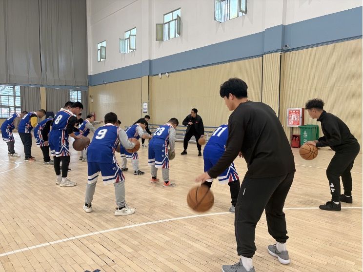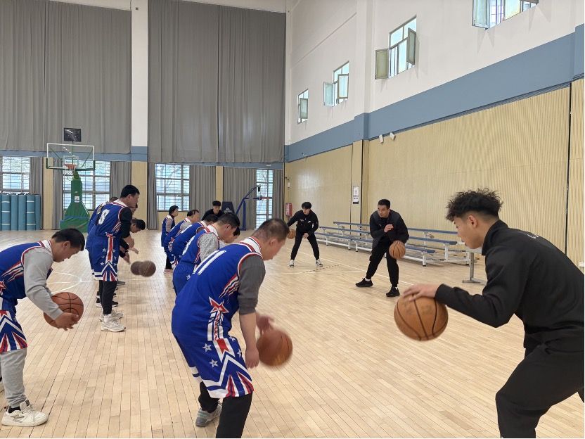 2025年3月20日,蔡维敏(右二)在演示运球。新华社记者 周畅 摄