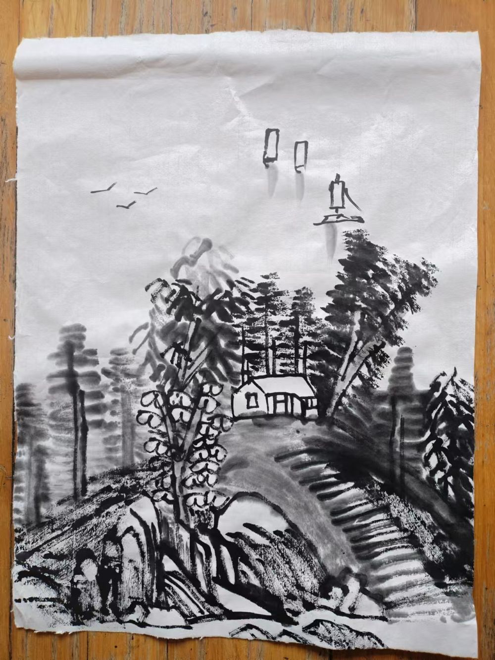 陈凤祥的儿子学习篮球后的画作。图片由陈凤祥提供