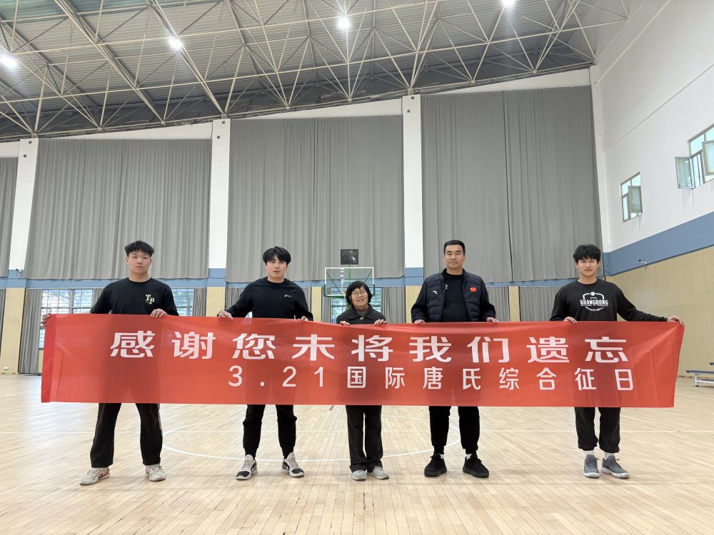 2025年3月20日,陈凤祥(中)为童心篮球队献上横幅。新华社记者 周畅 摄
