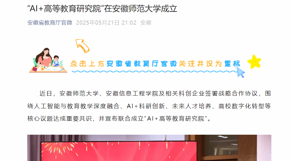 原报道阅读链接:【安徽省教育厅官微】https://mp.weixin.qq.com/s/TW-RYI3Og6nixW82M25PZA