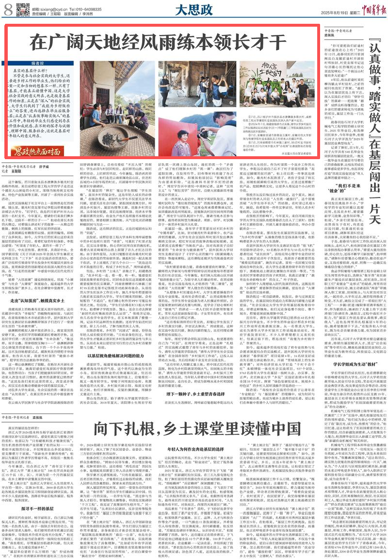 在陈浩看来,那些发生在基层的实践故事,让“为乡村作贡献”从抽象的概念变得具体可感,也影响着更多大学生的人生选择。
