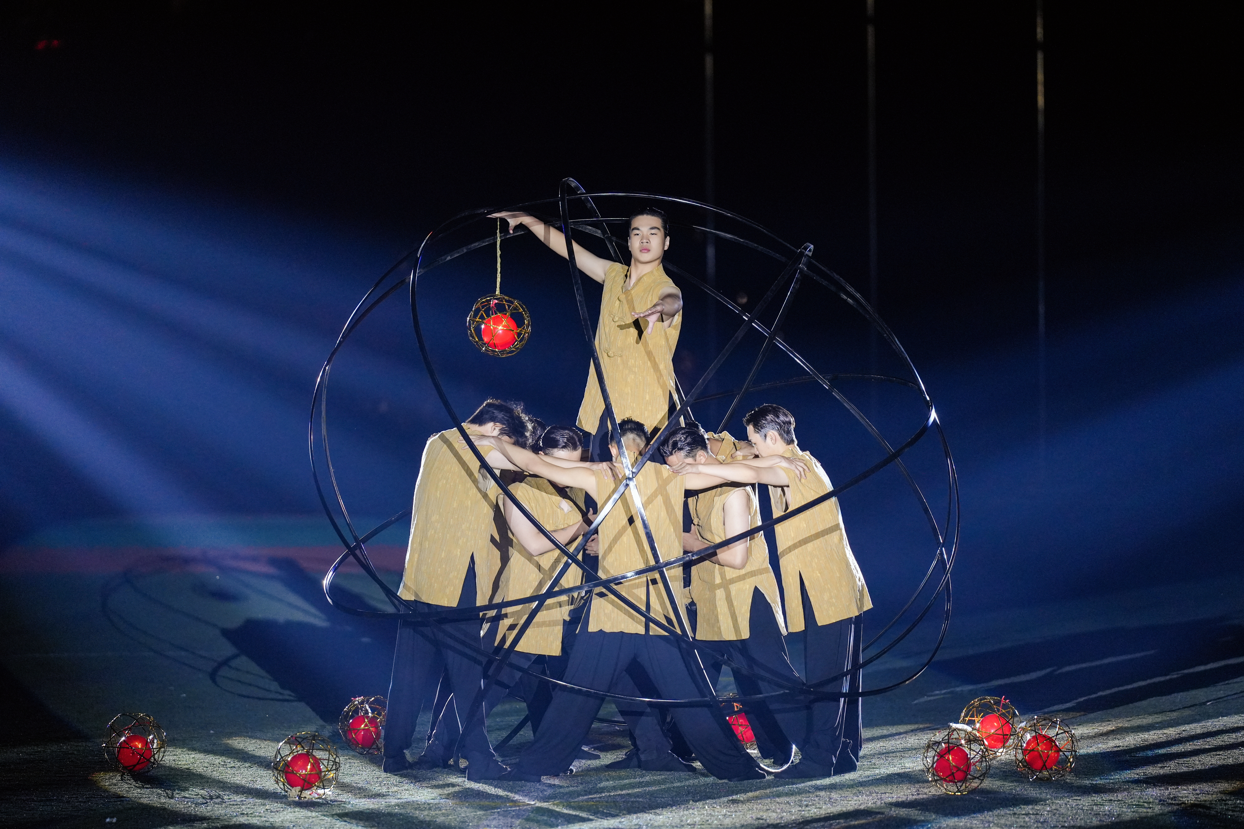 开幕式上,国家级非遗“滚灯”在《武・灯》中惊艳亮相。“以前觉得非遗离自己很远,摸到滚灯骨架才知老祖宗手艺多讲究。”大一新生戴志杰首次参加大型演出十分紧张,直到指导老师李晗告诉他“滚灯里藏着古人对自然的敬畏与祈愿”,他的心态才有所转变。“灯光亮起,滚灯划出弧线时,我成了让古老技艺重新发光的‘守灯人’,这种成长很幸福。”戴志杰说。