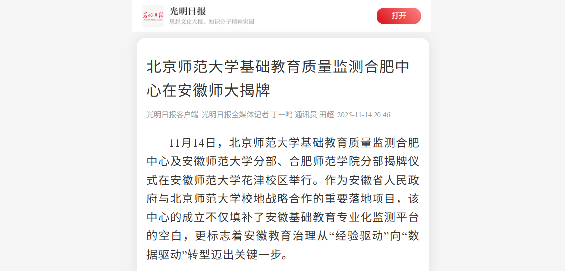 作为教育部直属重点高校,北京师范大学在基础教育质量监测领域拥有深厚的学科积淀、专业的研究团队与成熟的实践经验,其牵头建设的教育部基础教育质量监测中心,已成为全国基础教育监测领域的核心力量。此次合肥中心的设立,正是依托北师大的优势资源,精准对接安徽基础教育发展需求的重要举措——通过构建覆盖学前至中学全学段的监测体系,合肥中心将系统采集区域教育质量、义务教育课程实施等数据,科学分析学生学业发展、综合素质培养、教师专业能力提升等关键指标,为破解安徽基础教育发展中的“不平衡不充分”问题提供数据支撑与决策参考。