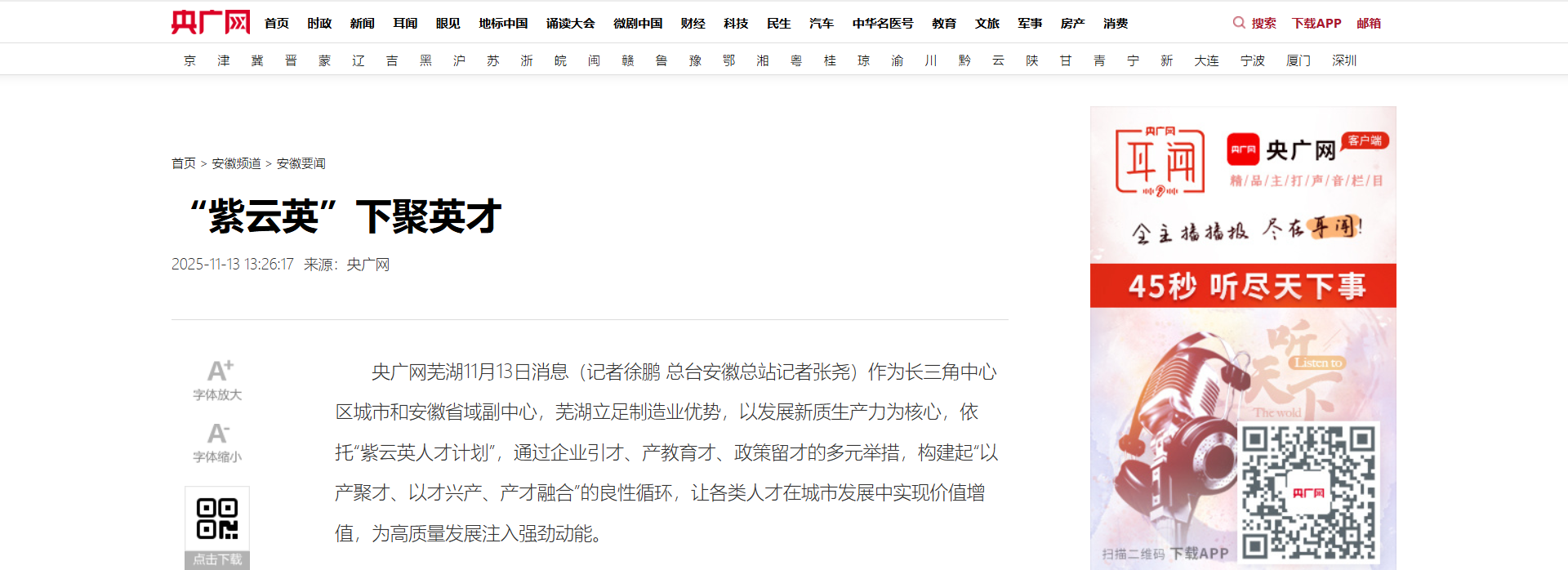 原报道阅读链接:【央广网】https://www.cnr.cn/ah/news/20251113/t20251113_527428664.shtml