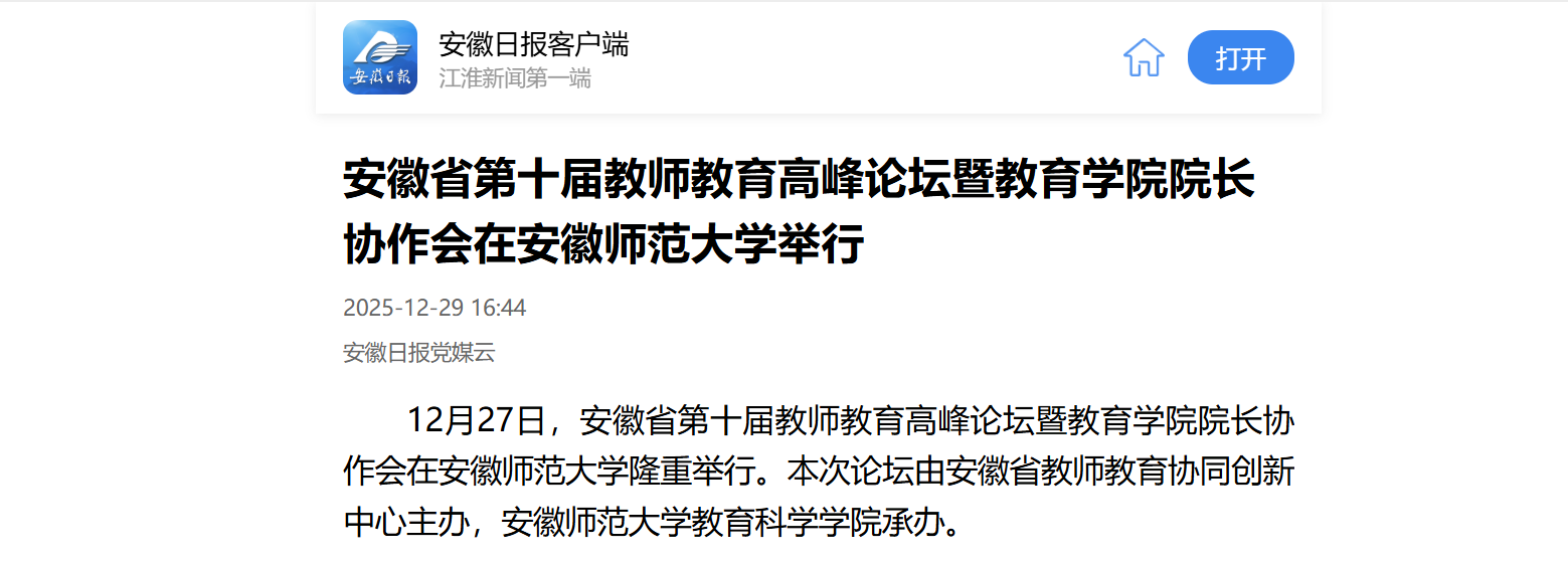 【振兴计划师大行】安徽省第十届教师教育高峰论坛暨教育学院院长协作会在我校举行