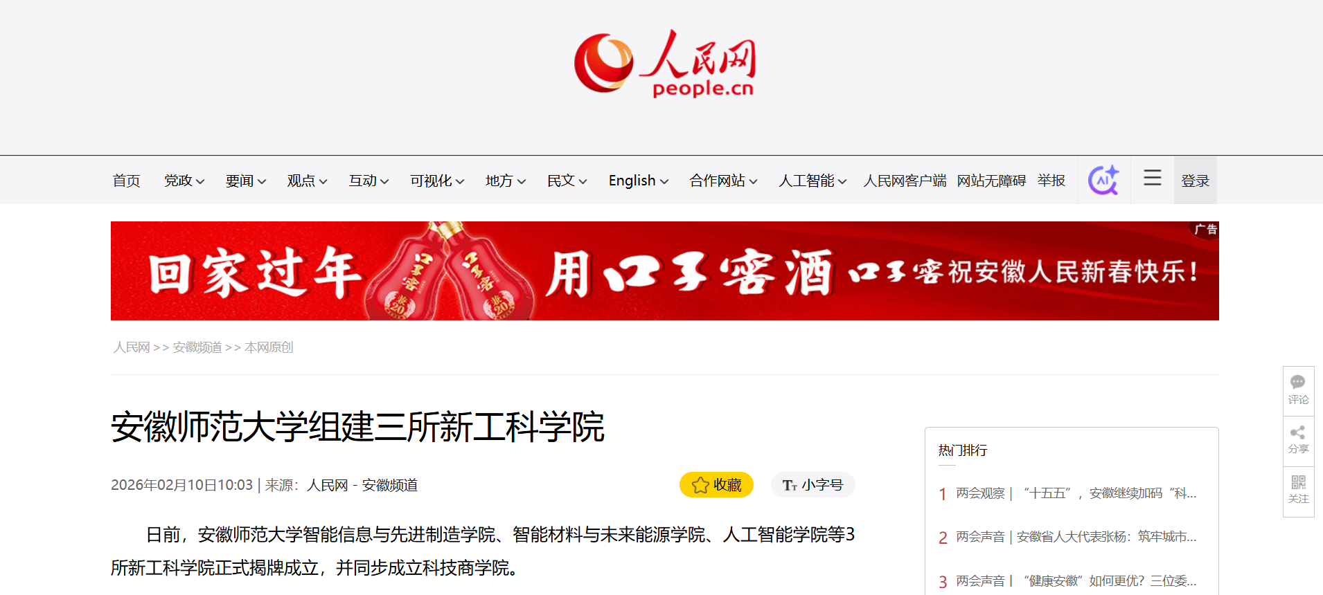 原报道阅读链接:【人民网】http://ah.people.com.cn/n2/2026/0210/c227131-41498709.html