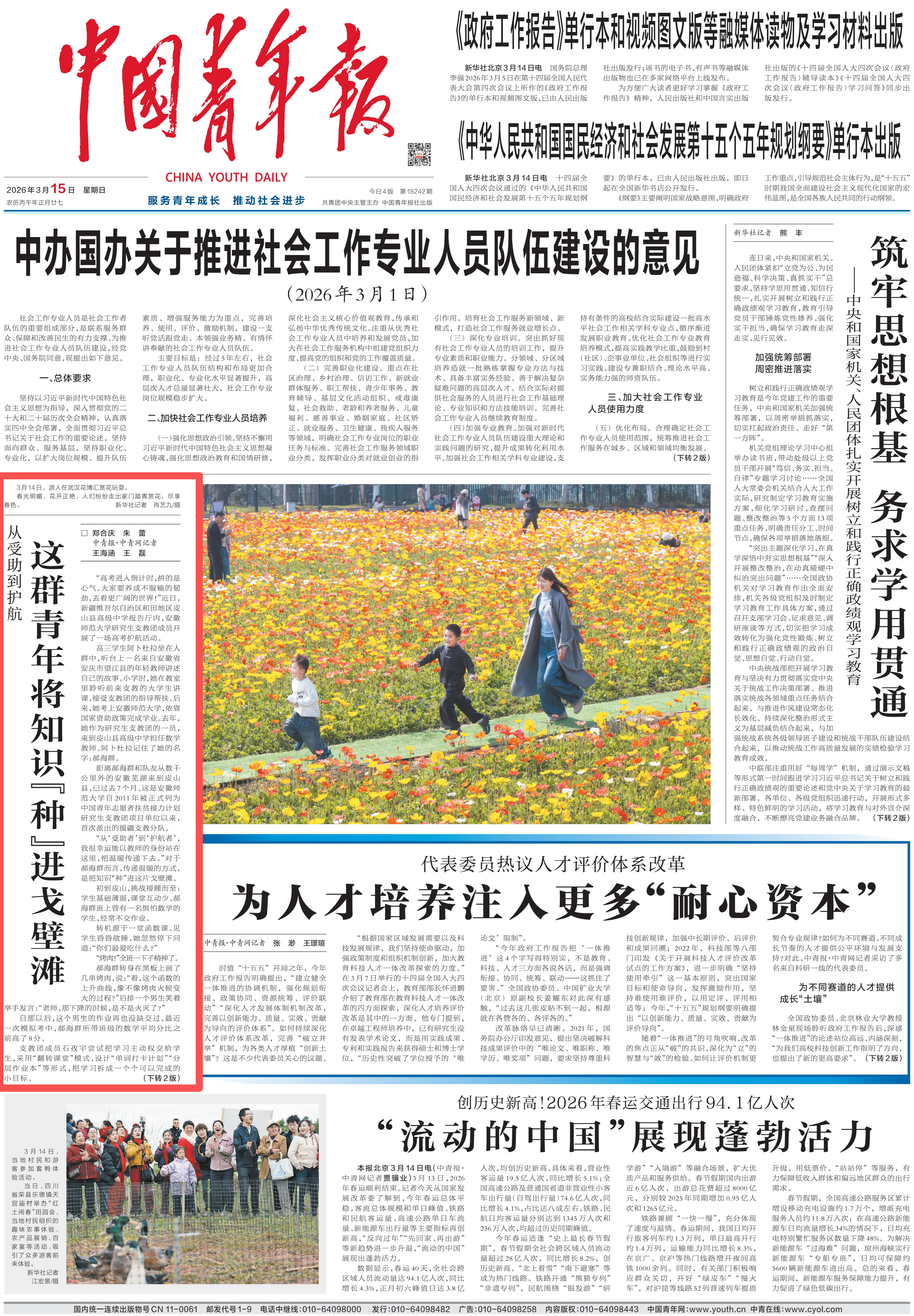 原报道阅读链接:【中国青年报】https://zqb.cyol.com/pc/content/202603/15/content_423406.html