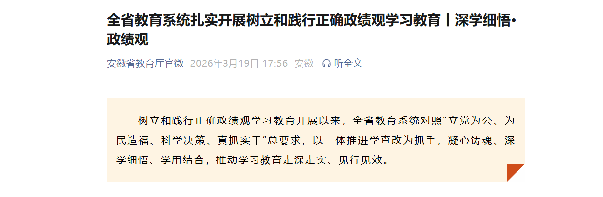 原报道阅读链接:【安徽省教育厅官微】https://mp.weixin.qq.com/s/obJlxMDxGBY453o6S4iuGg