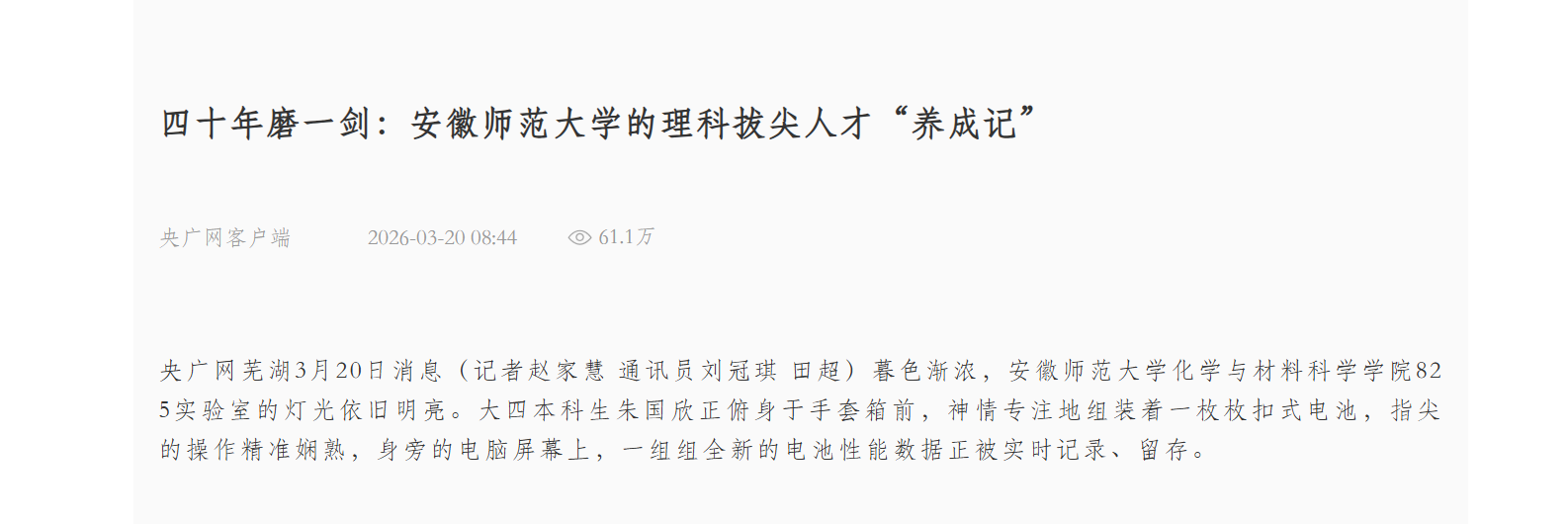 “师范院校培养理科拔尖人才,不是‘另起炉灶’,而是‘扬长避短’。”校党委书记蒋家平表示,安徽师范大学的四十年探索证明,地方院校只要找准定位、深耕特色,就能在基础学科拔尖人才培养战略中占据独特位置。