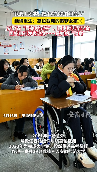 原报道阅读链接:【江西日报视频号】安徽省“最美大学生”、国家励志奖学金、国外期刊发表论文......是她的"勋章"