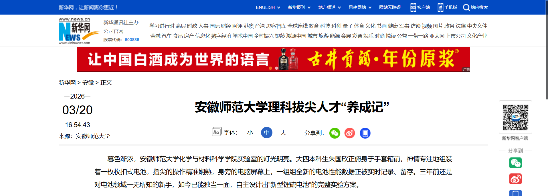 原报道阅读链接:【新华网】http://ah.news.cn/20260320/fe99f2157b3641a081480321c18a28a1/c.html