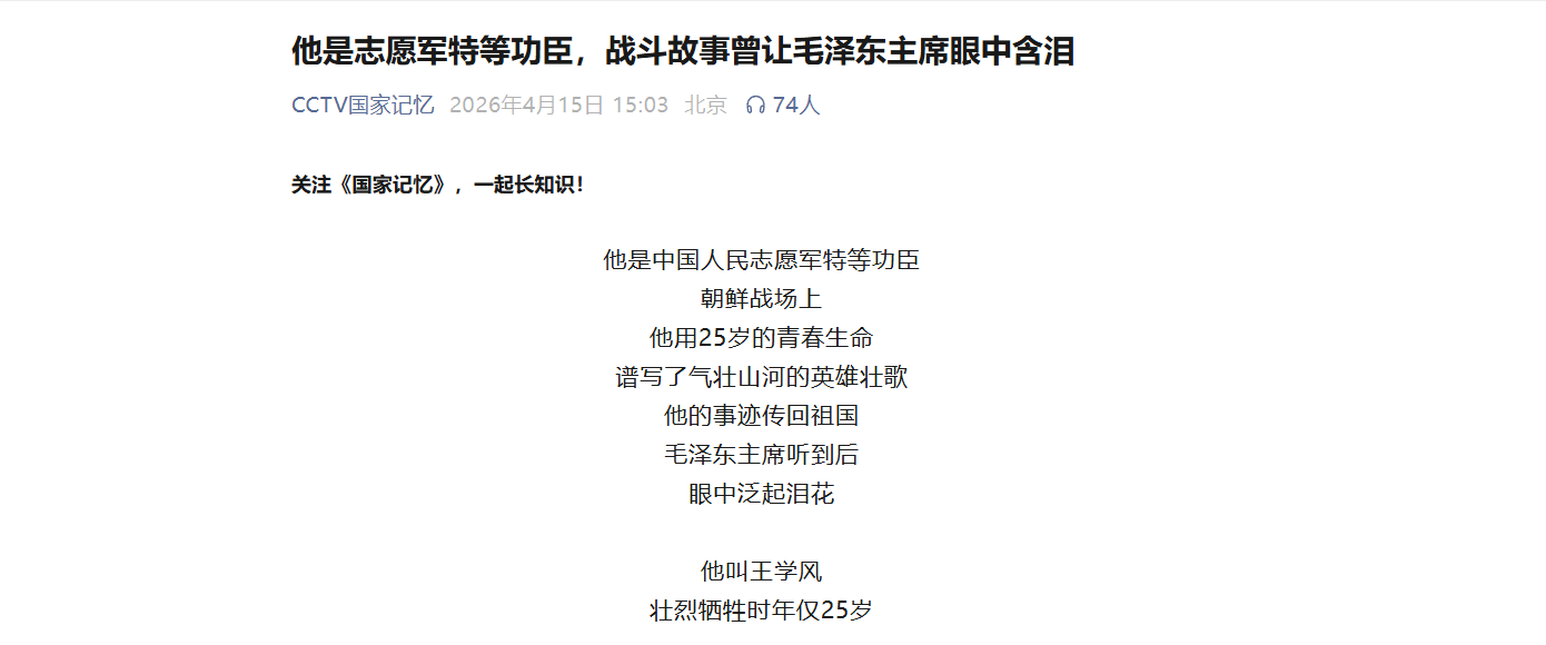 原报道阅读链接:【CCTV国家记忆公众号】https://mp.weixin.qq.com/s/Xm4qhd851IF4e1gYRS8Z7Q?scene=1&click_id=1