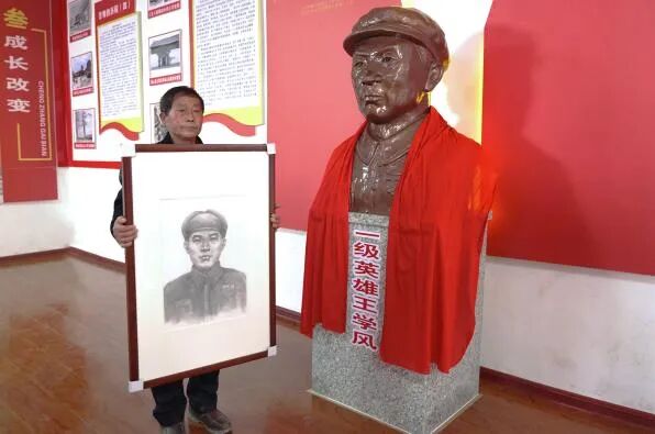 图:王学风烈士的侄子王法顺手持叔叔的画像