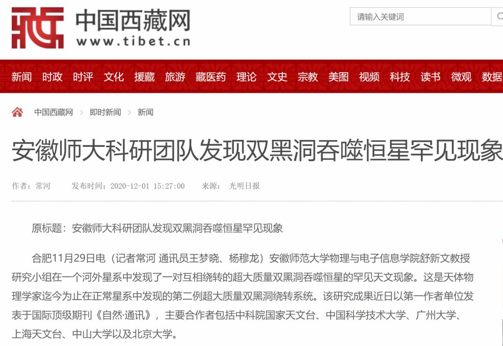 【中国西藏网】安徽师大科研团队发现双黑洞吞噬恒星罕见现象