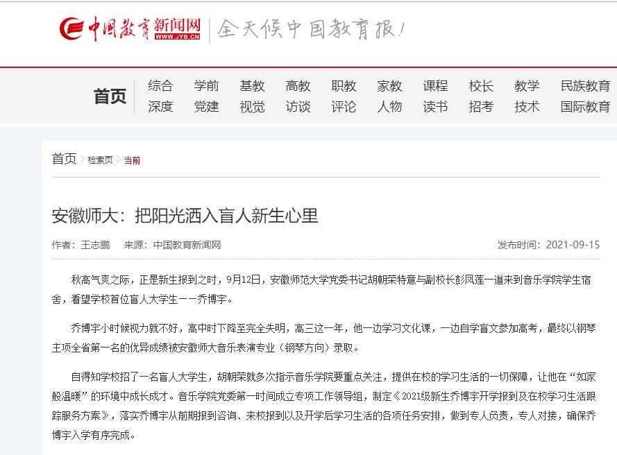 【中国教育新闻网】安徽师大:把阳光洒入盲人新生心里