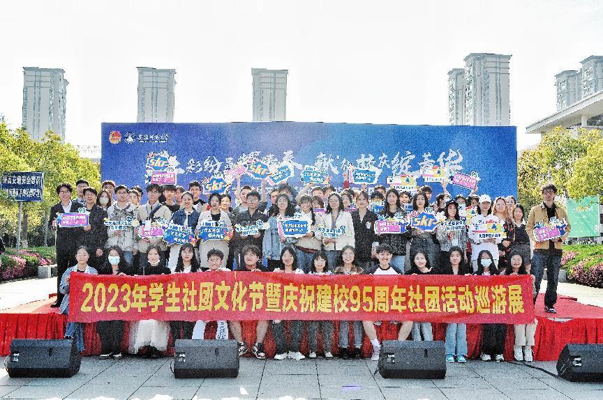 活动现场设置舞台表演和95周年校庆、“五育花开”、社团思政、学术科技创新、志愿服务五个展区。学生社团以“社彩纷呈耀青春,献礼校庆绽芳华”为主题,结合自身特色,通过互动体验、展板宣传等形式展现青春风采,共同为母校庆生。95周年校庆展区设置了丰富的互动体验活动,扎染、投壶、三行情诗、校史知识问答等丰富多彩的体验活动、别具一格的展示方式,带给返校校友及同学们沉浸式的体验。“五育花开”展区开展德智体美劳课程宣传与体验活动,充分发挥学生社团育人功能,让学生社团成为开展“五育并举”教育活动的新载体。社团思政展区开展党的二十大知识问答、党史故事宣讲等,以同学们喜闻乐见的形式开展情景互动式理论学习教育;学术科技创新展区借助趣味模拟实验和科技成果展示进行科学知识宣传,带领大家领略科技的魅力;志愿服务展区以学校的优秀志愿服务项目品牌为线索,共话身边人的志愿故事。