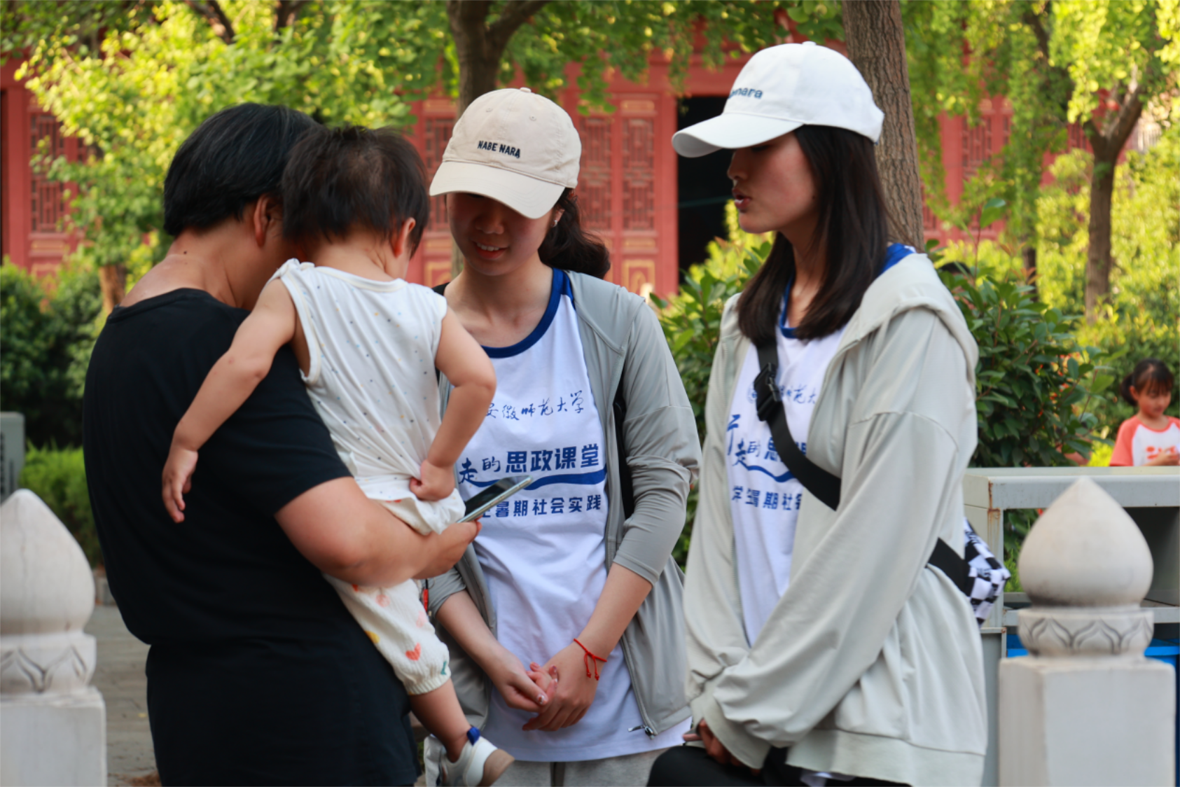 实践队员在太和文庙中与家长交流 刘世钊 摄