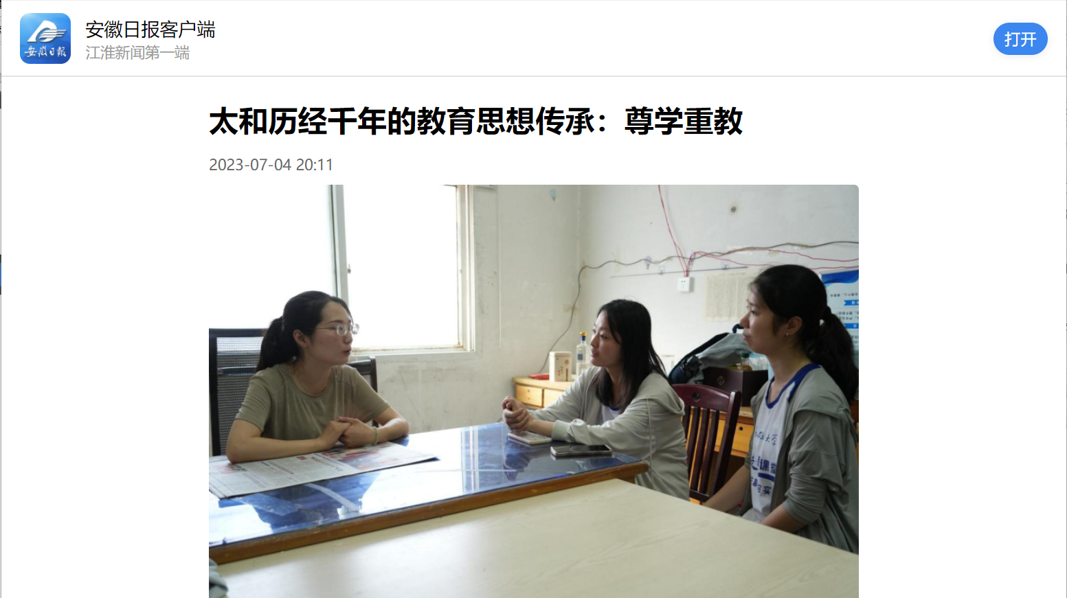 原报道阅读链接:【安徽日报客户端】https://app.ahnews.com.cn/displayTemplate/news/newsDetail/3108/884047.html?isShare=true