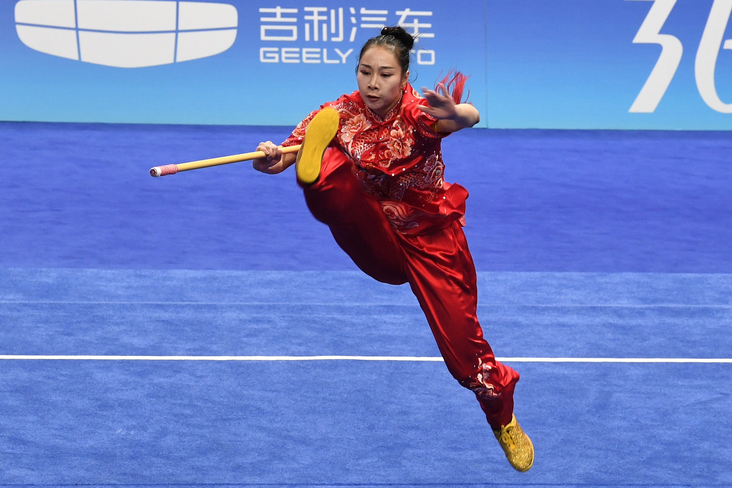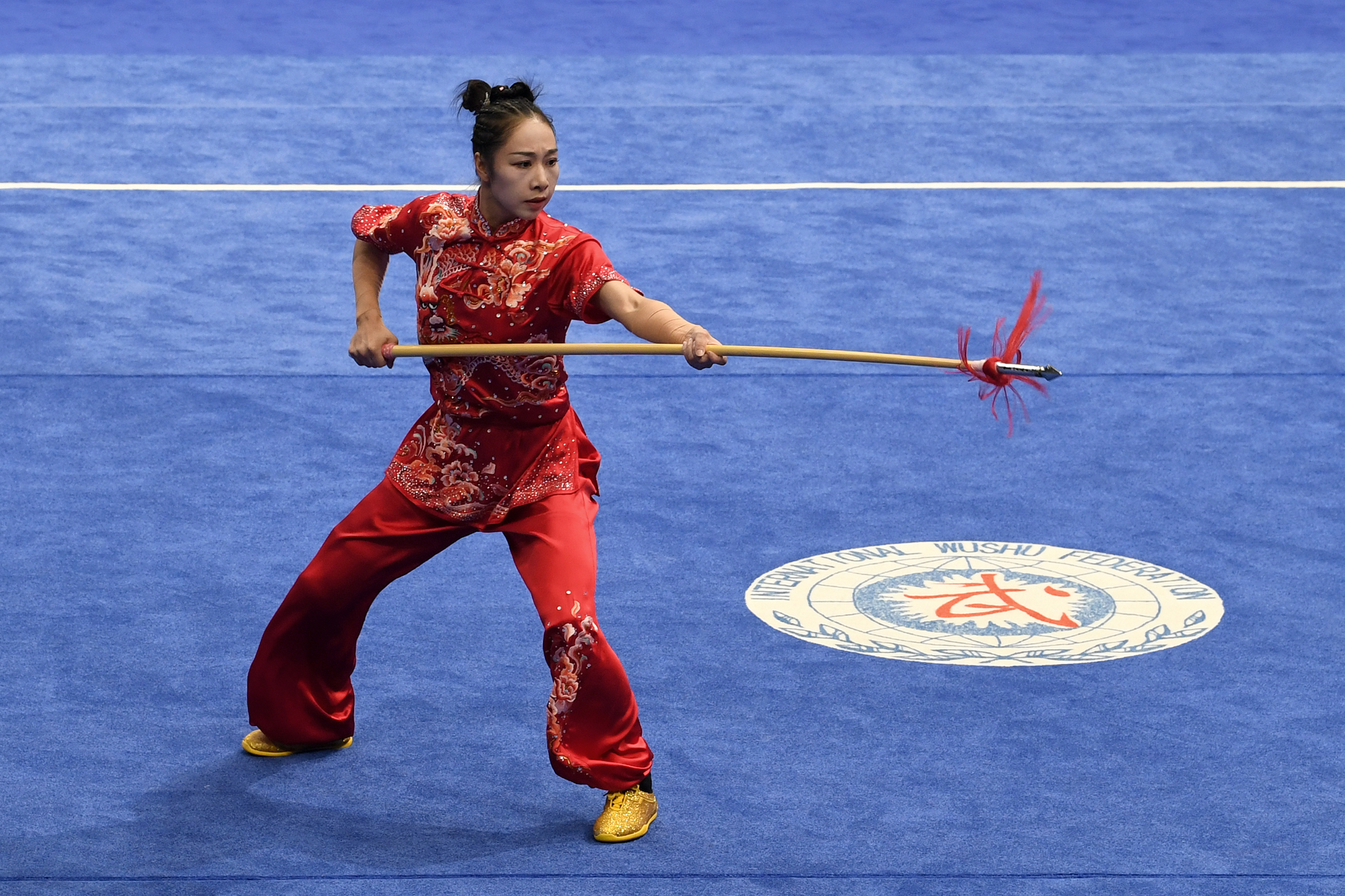 9月27日,杭州亚运会武术项目女子剑术枪术全能决赛在杭州萧山瓜沥文化体育中心举行。赖晓晓以绝对实力力压各路高手,获得该项目冠军。至此,赖晓晓实现全运会、世锦赛、世运会、亚运会“大满贯”。图为赖晓晓在枪术比赛中。中国妇女报全媒体记者 杨睿/摄