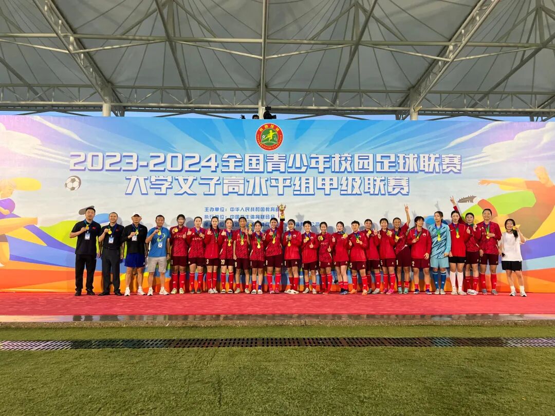 6月22日—29日,2023-2024全国青少年校园足球联赛大学女子高水平组甲级联赛在青岛白沙湾足球基地开赛。来自浙江大学、武汉体育学院、湖南师范大学等全国12所高校的300余名运动员展开为期10天的激烈角逐,安徽师范大学女子足球队一路过关斩将,勇夺本次赛事桂冠,这是安徽省高校参加此项赛事的最好成绩。领队黄德春、主教练李伟勇、队员方潇潇分别荣获最佳领队、最佳教练员、最佳球员荣誉称号。